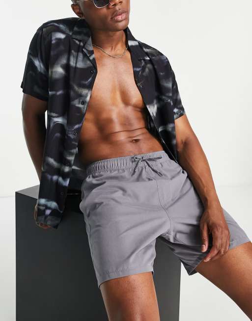 ASOS DESIGN – Mörkgrå badshorts i medellång modell