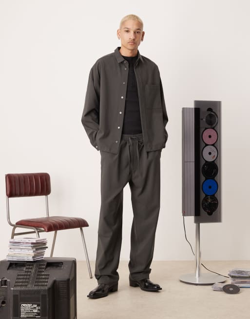 ASOS DESIGN – Mörkgrå, baggy byxor, del av set