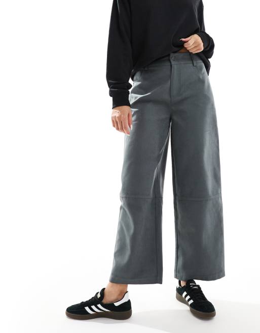 ASOS DESIGN – Mörkgrå byxor med barrelben i mockaimitation