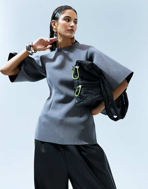 ASOS DESIGN – Mörkgrå figursydd topp av scubatyg med korta ärmar