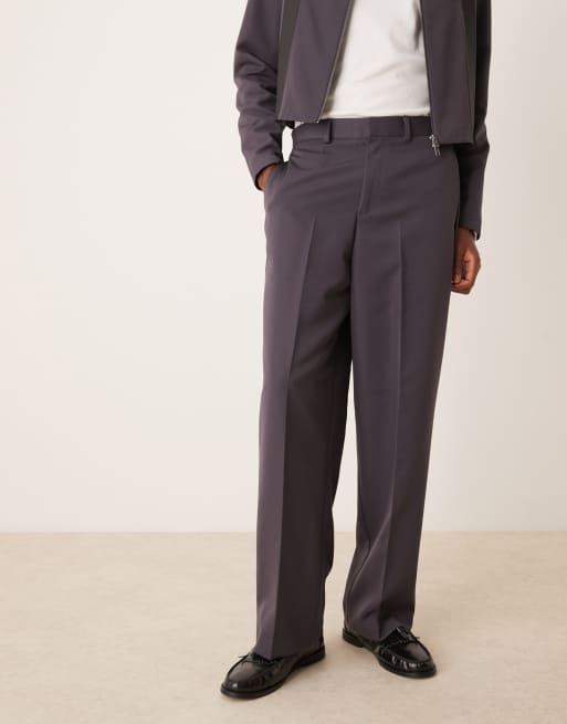 ASOS DESIGN – Mörkgrå finbyxor med hög midja och vida ben, del av set