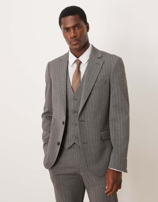 ASOS DESIGN – Mörkgrå, fiskbensmönstrad kavaj i yllestil med extra smal passform