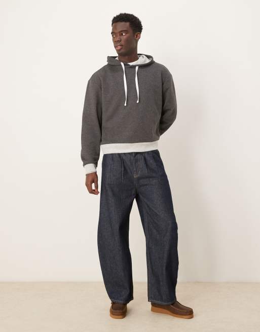 ASOS DESIGN – Mörkgrå huvtröja i boxig oversize passform med kontrastfärgad kant