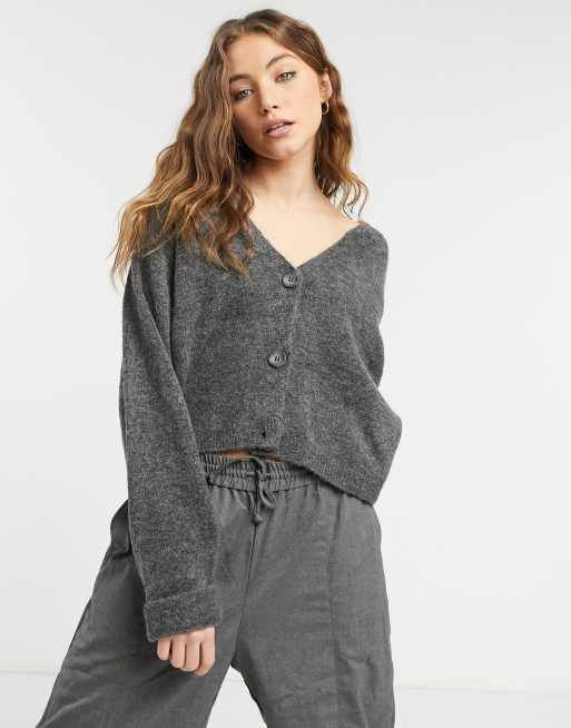 ASOS DESIGN – Mörkgrå kofta i boxig passform med uppvikta muddar