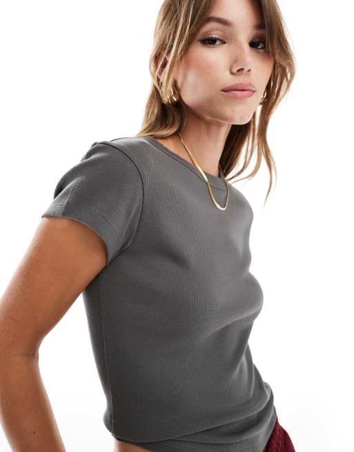 ASOS DESIGN – Mörkgrå, kort t-shirt