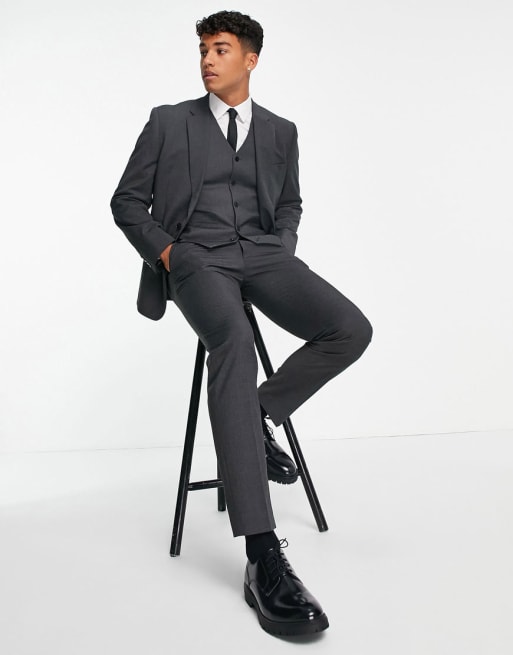 ASOS DESIGN – Mörkgrå kostym med smal passform