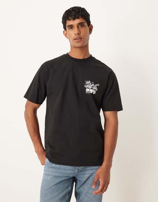 ASOS DESIGN – Mörkgrå, kraftig, avslappnad t-shirt med draktryck