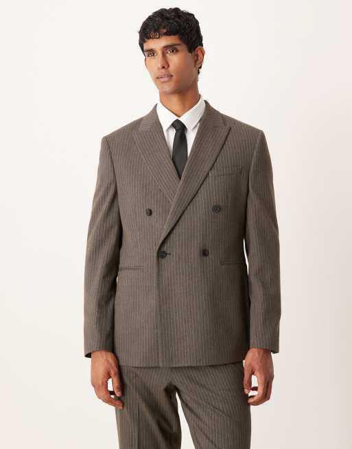 ASOS DESIGN – Mörkgrå kritstrecksrandig, dubbelknäppt kavaj i regular fit