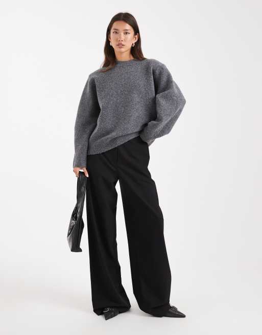 ASOS DESIGN – Mörkgrå, lång tröja med sänkt axelsöm och axelvaddar