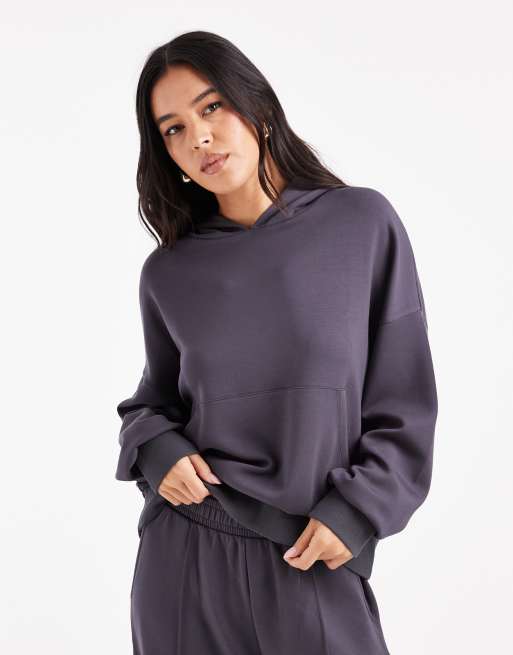 ASOS DESIGN – Mörkgrå, mjuk huvtröja i cupro