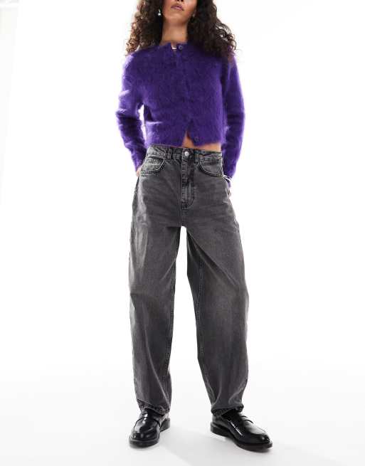 ASOS DESIGN – Mörkgrå, smala jeans med barrelben och hög midja