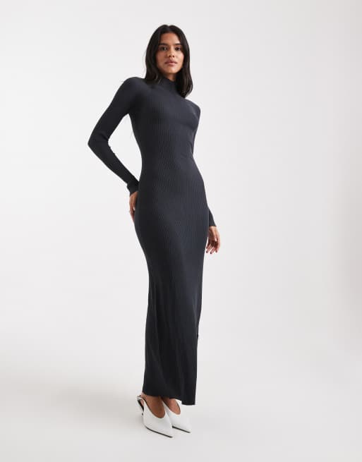 ASOS DESIGN – Mörkgrå, stickad maxiklänning med finmaskiga, ribbade detaljer