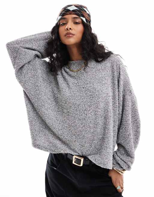 ASOS DESIGN – Mörkgrå, stickad tröja i bouclé