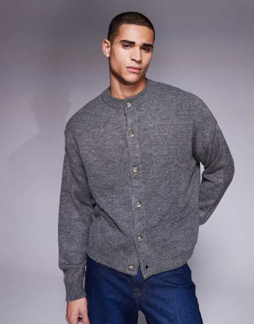 ASOS DESIGN – Mörkgrå, stickad tröja i oversize med rund halsringning, fickor och boxig passform