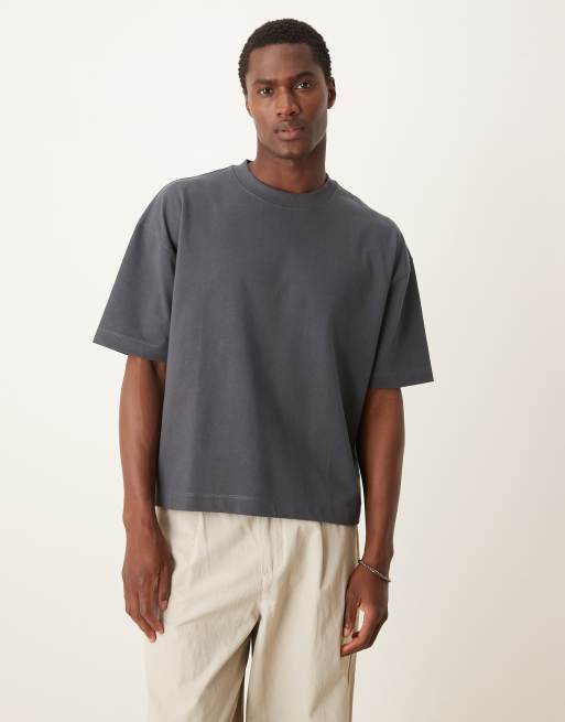 ASOS DESIGN – Mörkgrå, superkraftig t-shirt med boxig oversize passform