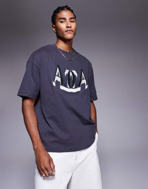 ASOS DESIGN – Mörkgrå t-shirt i oversize med collegebroderi framtill