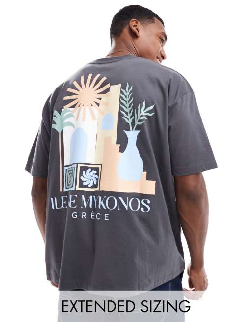 ASOS DESIGN – Mörkgrå t-shirt i oversize med tryck baktill