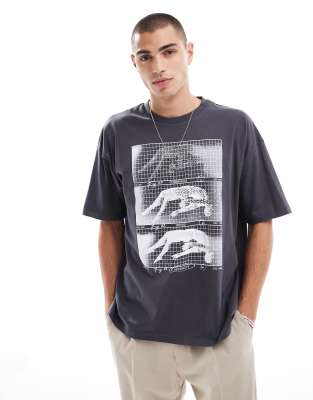 ASOS DESIGN – Mörkgrå t-shirt i oversize med tryck framtill