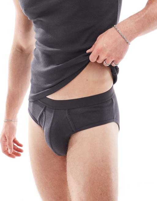 ASOS DESIGN – Mörkgrått, ribbat set med linne och kalsonger