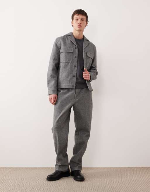 ASOS DESIGN – Mörkgrått, uppklätt set i borstad twill med harringtonjacka