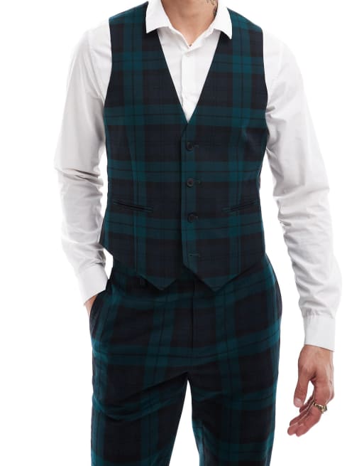 ASOS DESIGN – Mörkgrön, skotskrutig kostymväst med smal passform