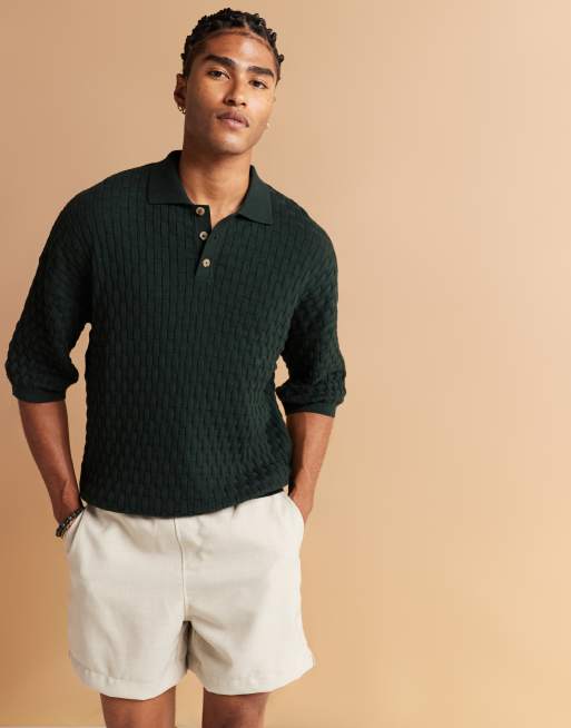 ASOS DESIGN – Mörkgrön, stickad pikétröja med avslappnad och 3/4-långa ärmar