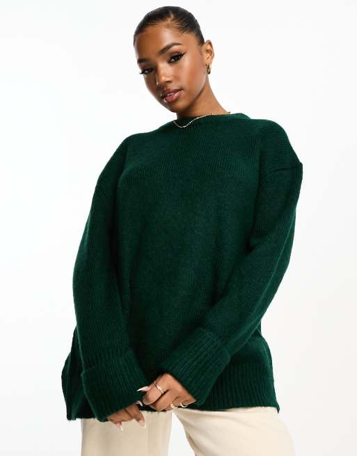 ASOS DESIGN – Mörkgrön ylletröja i oversize med rund halsringning