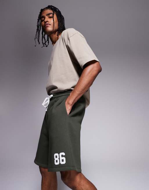 ASOS DESIGN – Mörkgröna shorts i oversize med nummertryck