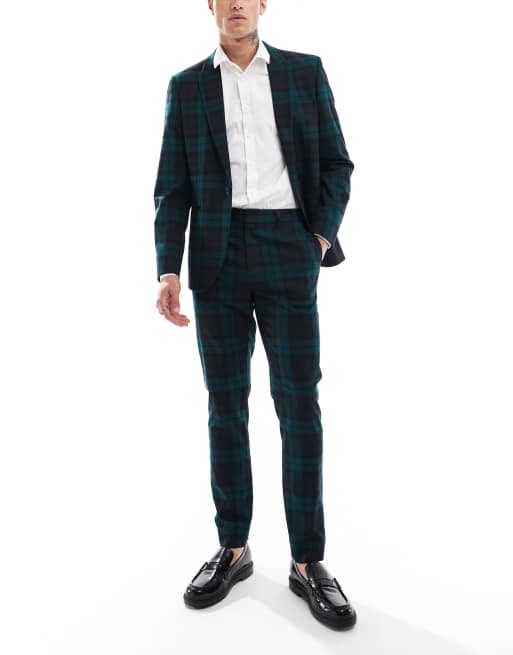 ASOS DESIGN – Mörkgröna, skotskrutiga kostymbyxor med smal passform