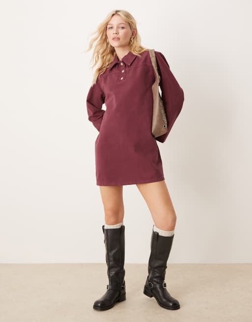 ASOS DESIGN – Mörklila skjortklänning i denim