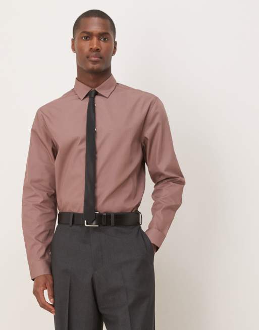 ASOS DESIGN – Mörkrosa, formell skjorta i regular fit och lättstruken poplin