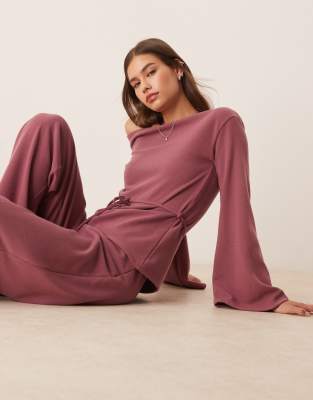 ASOS DESIGN – Mörkrosa topp med långa ärmar, bara axlar och knytband, del av set