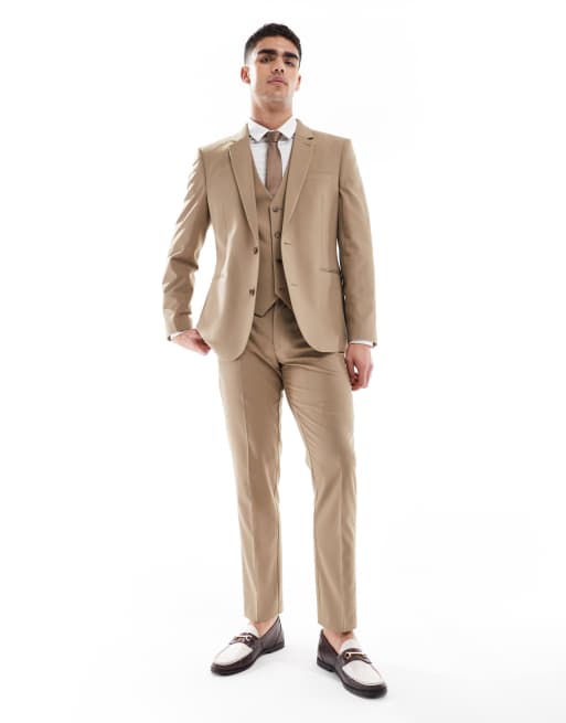 ASOS DESIGN – Mörkt stenfärgad kostym med smal passform