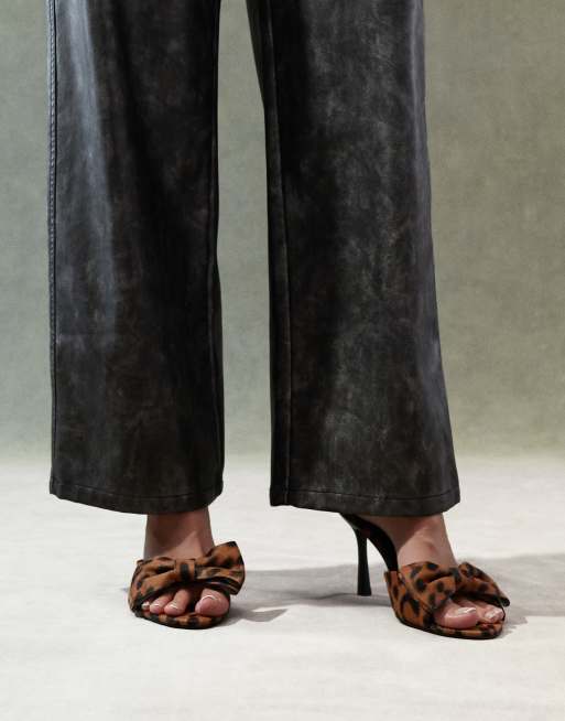ASOS DESIGN – Natter – Leopardmönstrade mules i läder med hög klack och rosett