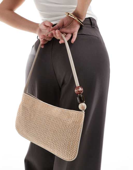 ASOS DESIGN – Naturfärgad axelväska i strå med kulor i harts