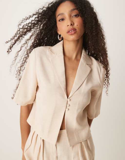 ASOS DESIGN – Naturvit, kort skjorta med korta ärmar och knytning framtill, del av set