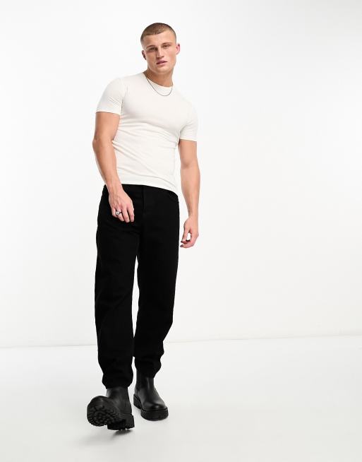 ASOS DESIGN – Naturvit kort t-shirt i muscle fit