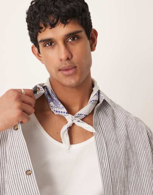 ASOS DESIGN – Naturvit och marinblå, paisleymönstrad bandana