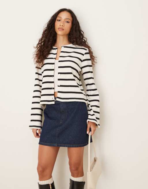 ASOS DESIGN – Naturvit, panelsydd topp med långa ärmar, knäppning och randigt mönster