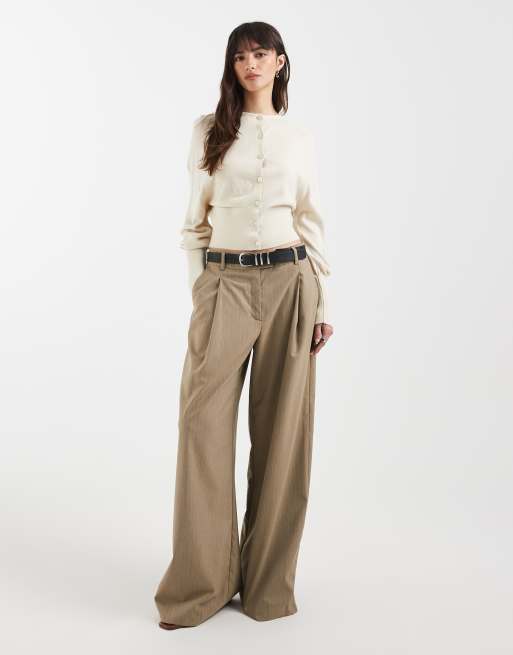 ASOS DESIGN – Naturvit, stickad kofta med markerad midja och ballongärmar