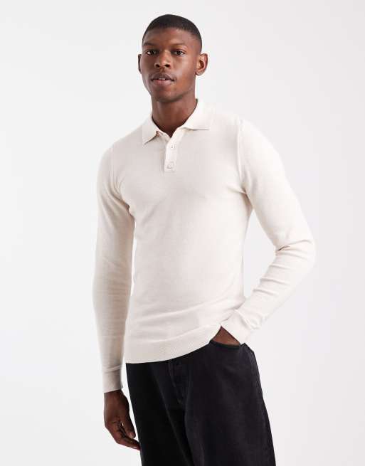 ASOS DESIGN – Naturvit, stickad pikétröja i muscle fit med textur