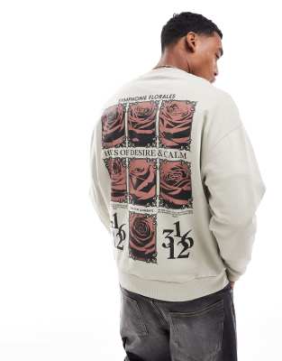 ASOS DESIGN – Naturvit sweatshirt med tryck baktill