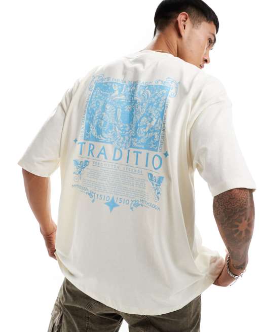 ASOS DESIGN – Naturvit t-shirt i oversize med renässanstryck baktill