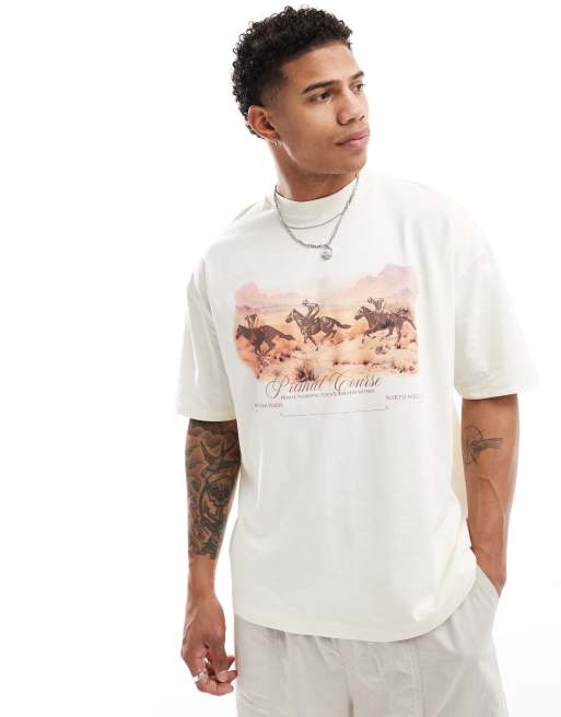 ASOS DESIGN – Naturvit t-shirt i oversize med sceniskt tryck framtill