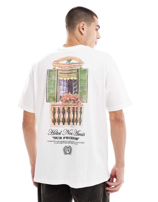 ASOS DESIGN – Naturvit t-shirt i oversize med tryck baktill