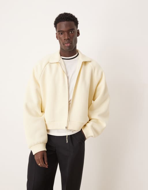 ASOS DESIGN – Naturvit träningsjacka i extra oversize och kort design med ståkrage och dragkedja