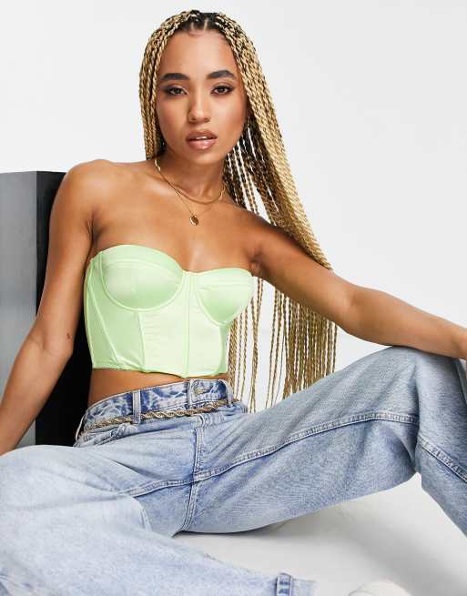ASOS DESIGN – Neongrön, axelbandslös korsett med bygel av satin