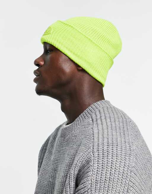ASOS DESIGN – Neongrön mössa med bred uppvikning och gummimärke