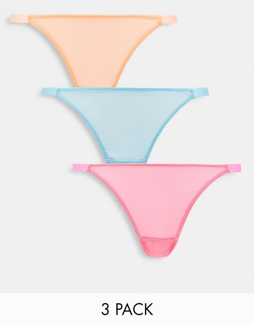 ASOS DESIGN – Neonrosa, blå och persikofärgade tangatrosor i mesh, 3-pack