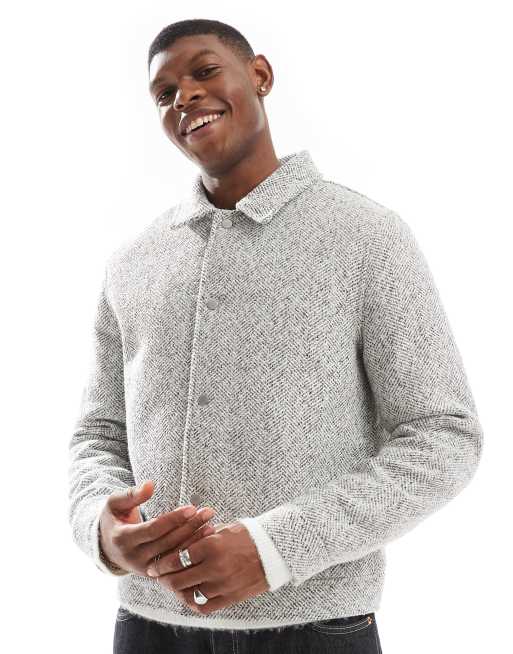ASOS DESIGN – Neutral, fiskbensmönstrad Harrington-jacka i yllestil